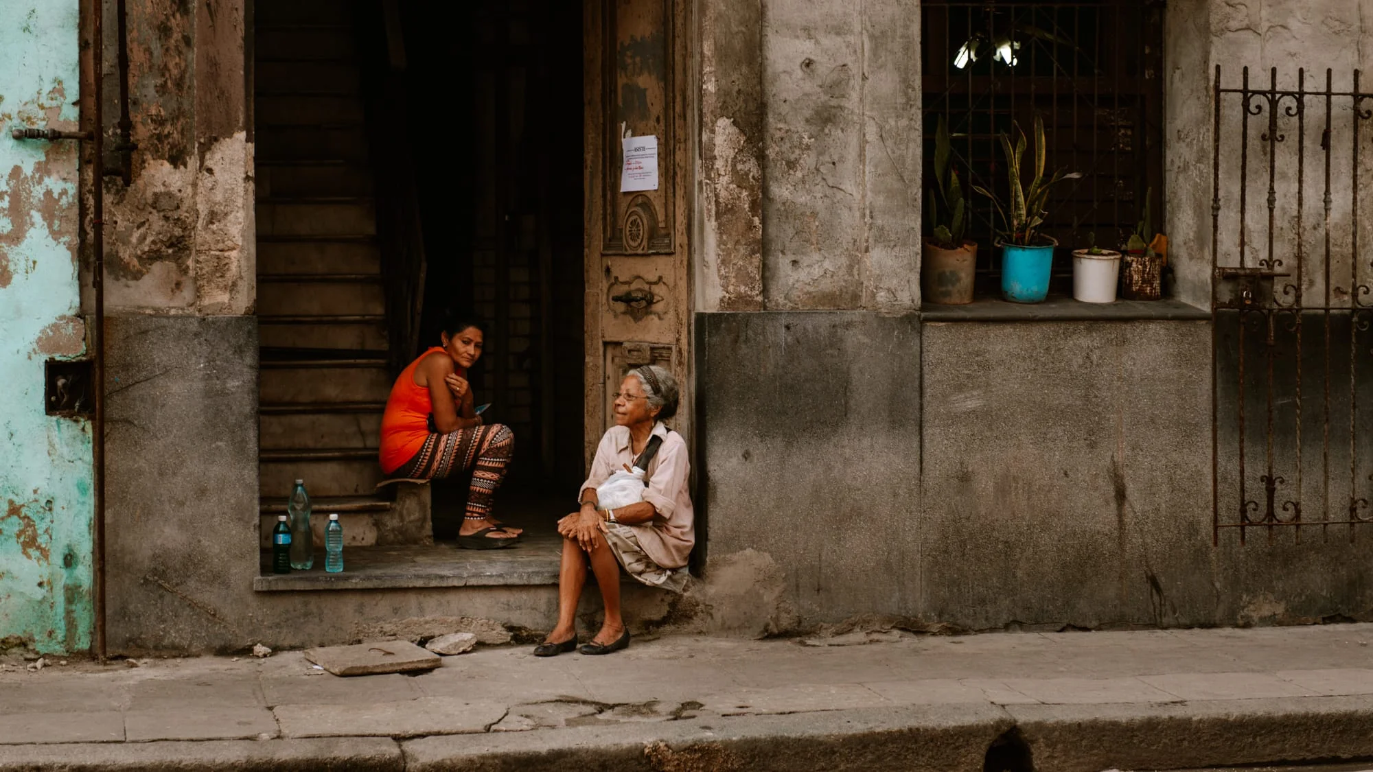 Do Hawany jechaliśmy jakąś godzinkę, może trochę więcej. Taxówkarz podrzucił nas pod samą casę. Ta wyglądała dużo lepiej niż nasza poprzednia. Przywitała nas sympatyczna właścicielka, od razu zaproponowała kawę i coś zimnego do picia. Zauroczył nas widok z balkonu. Zostawiliśmy bagaże i poszliśmy od razu na miasto. Ciekawi Hawany, ludzi, Kuby. Bez mapy, bez jakiegokolwiek planu, bez listy miejsc które koniecznie trzeba odwiedzić, postanowiliśmy po prostu poszwędać się po ulicach, zobaczyć jak wygląda życie na Kubie. Poszliśmy na prawo od naszej casy i tak natknęliśmy sie na coś w rodzaju jarmaku z kwiatami. Dość tłoczno, głośno. Każdy coś krzyczy, samochody trąbią. Generalnie pierwsze wrażenie dość szokujące. Nie owijając w bawełnę, smród, bród i bida z nędzą. Na ulicach walają się wszędzie śmieci, tu i ówdzie pływają jakieś ścieki, trzeba uważać żeby w coś nie wdepnąć. Można też oberwać jakimś spadającym kawałkiem z walących się budynków. Co jakiś czas leżała kupka gruzu, który się osypuje. Ludzie siedzący przed swoimi domami lub wyglądający przez okno. Za każdy razem miło się uśmiechamy, krzyczmy z daleka hola, ale mało kto odpowiada. Czasami kiwną głową, czasami odpowiedzą tak na odczepnego, ale jakiejś życzliwości czy radości w ich oczach nie widzieliśmy.